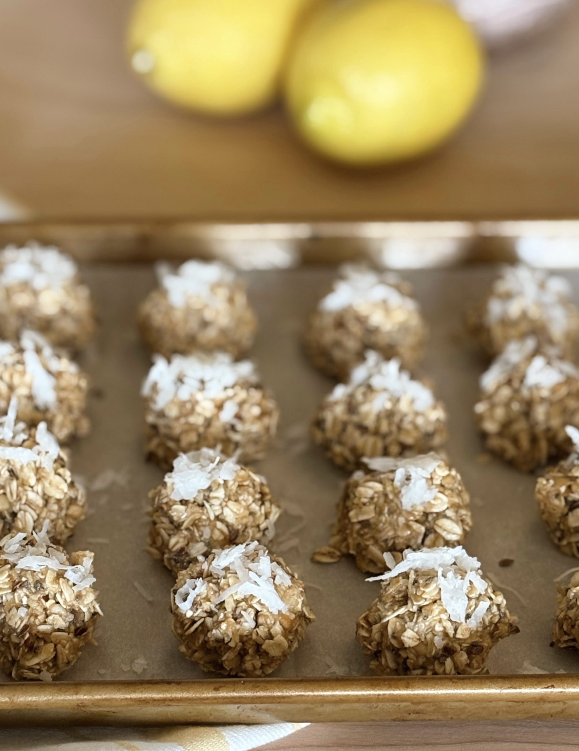 If you’ve been around for a while, you know that I love lemon, especially during the spring. I will put it in everything from breads and cakes to chicken and potatoes. These no-bake lemon cookies are perfect for adding a little brightness to your day. Plus, they are made with nutritious ingredients, so you can feel good about enjoying these cookies any time of day. Rolled oats, protein powder, and cashews make the base of the cookies while honey and lemon add sweetness and flavor. Sprinkled with a little shredded coconut, these cookies are hard to resist!